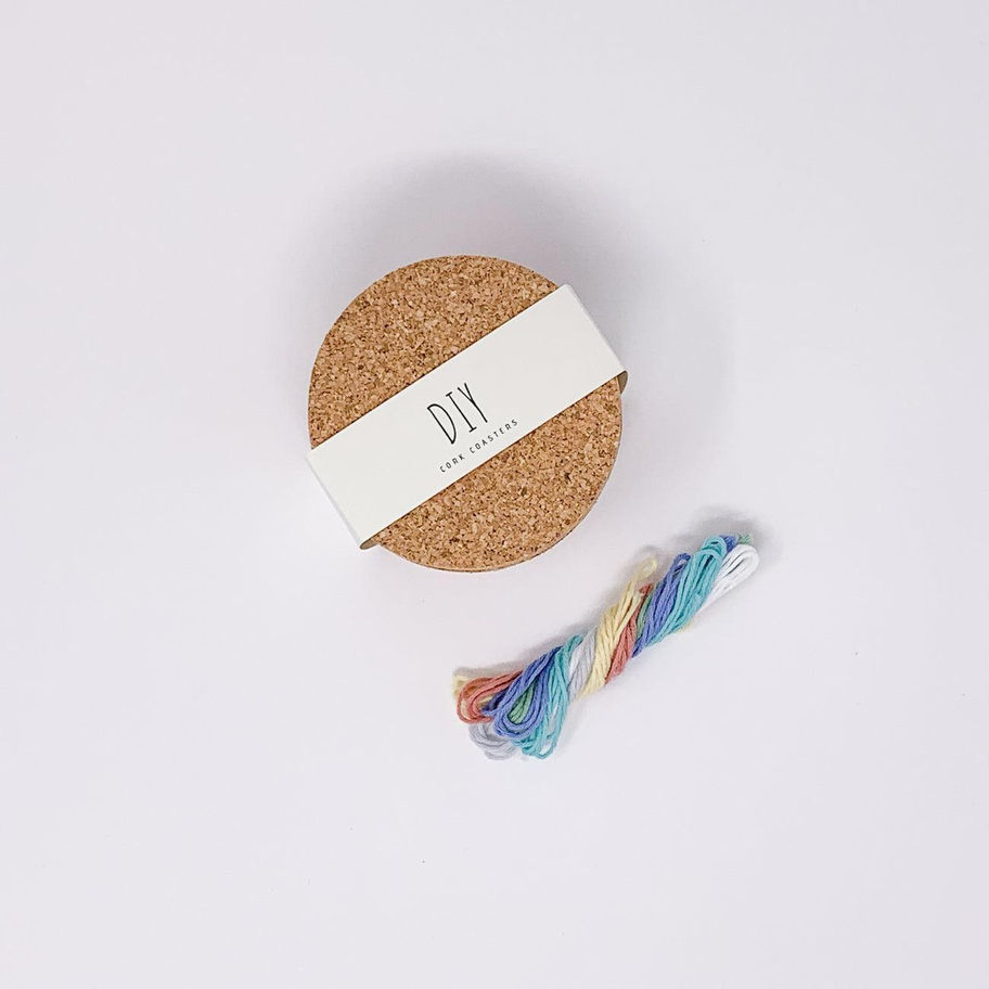 DIY - Cork coasters for crafts, round, set of 10 with 7 pcs cotton yarn