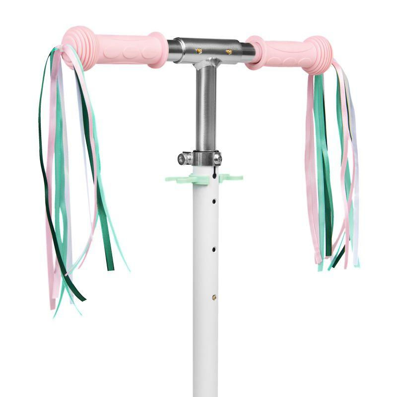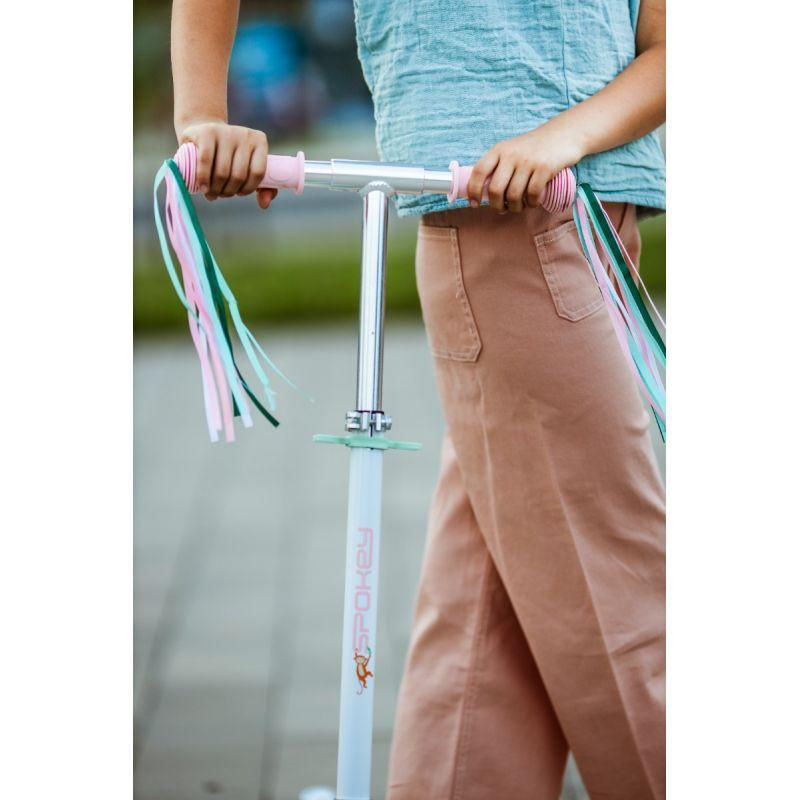 - has non-slip handlebar grips decorated with removable, colorful fringes.